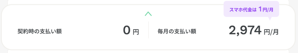 契約時の支払いはなく、毎月の支払いは通信料とスマホ代金1円のみです。